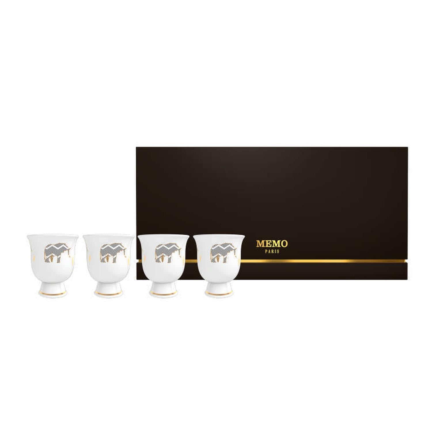 Set de 4 velas perfumadas con Pomelo de Inlé presentadas en tazas de porcelana blanca Bone china, doradas a mano y fabricadas en Francia. Una calidad de porcelana tan delicada como resistente.