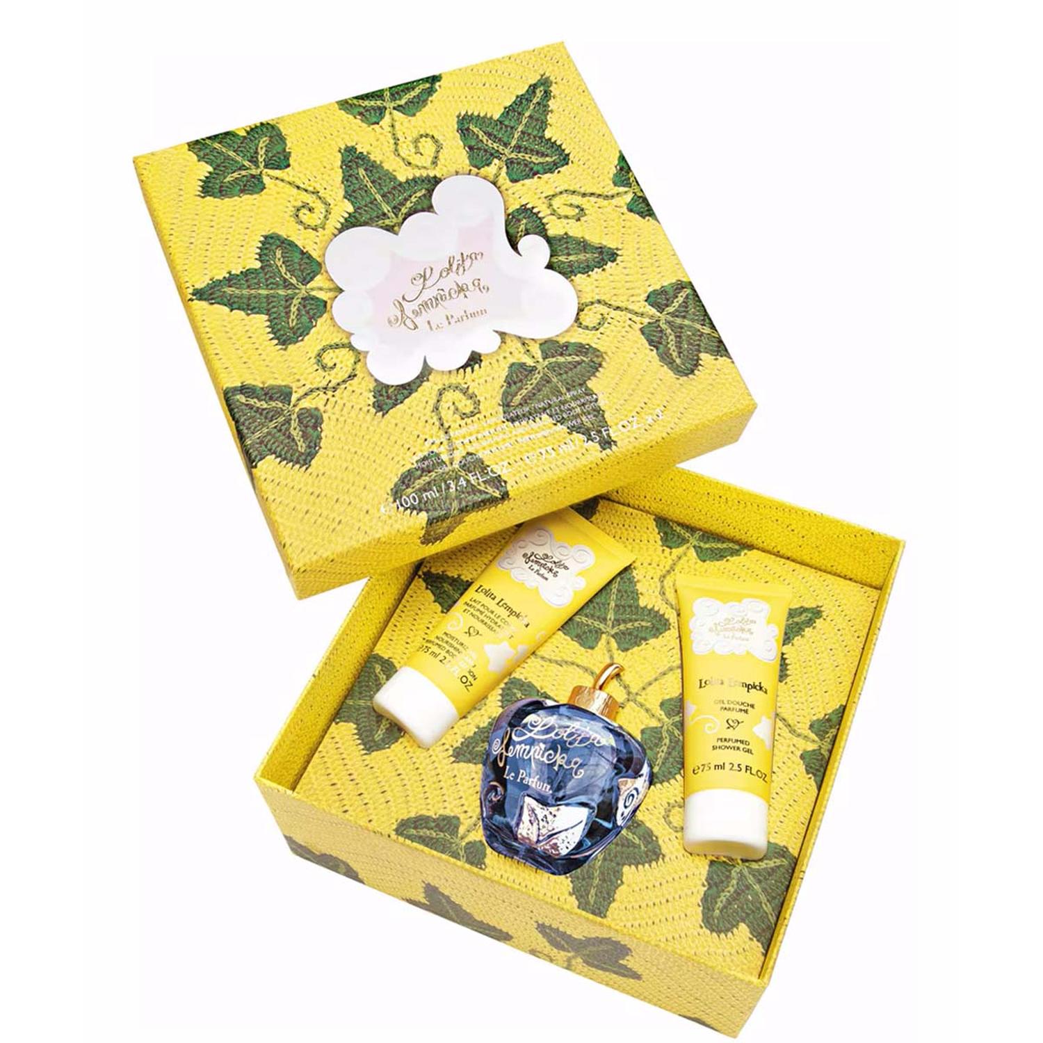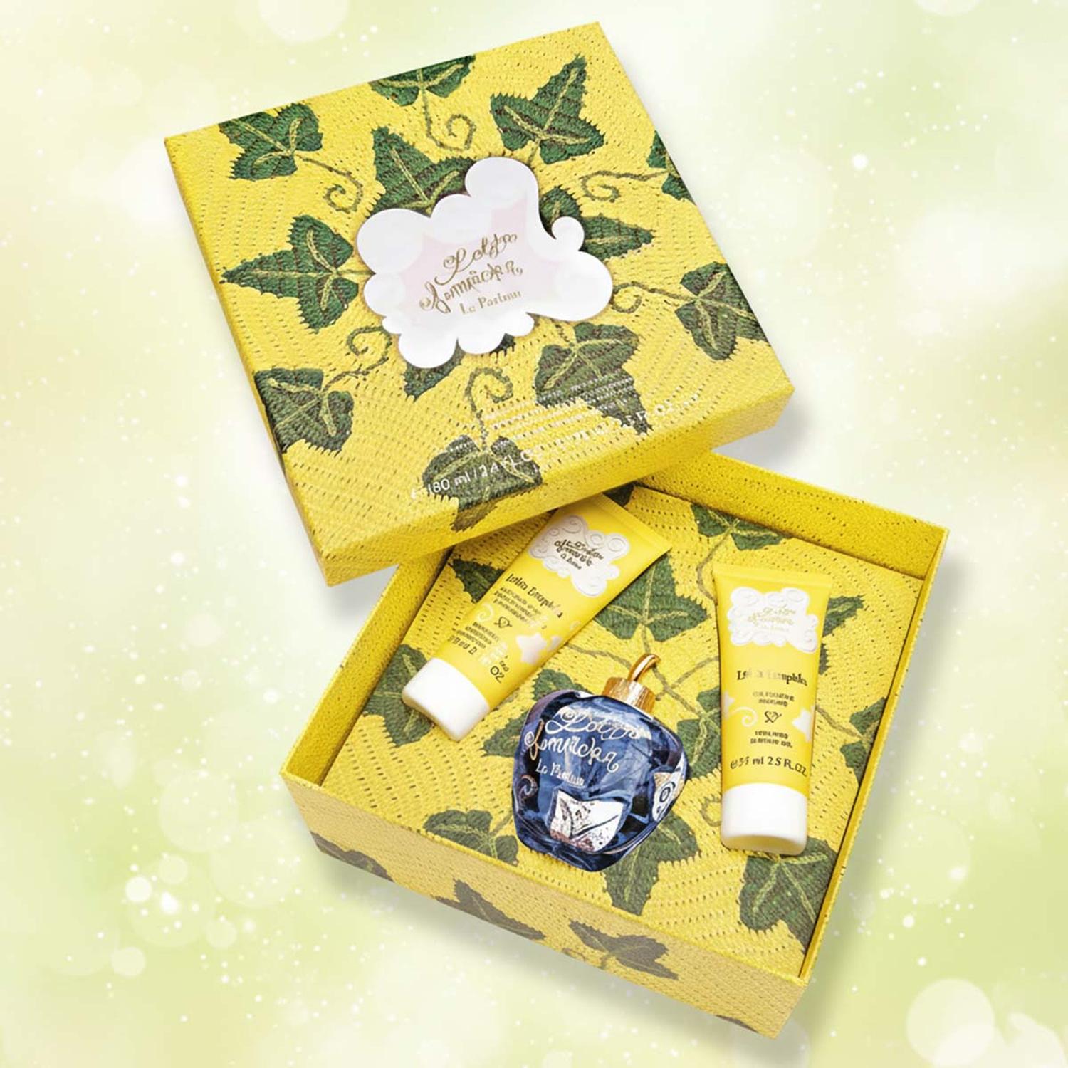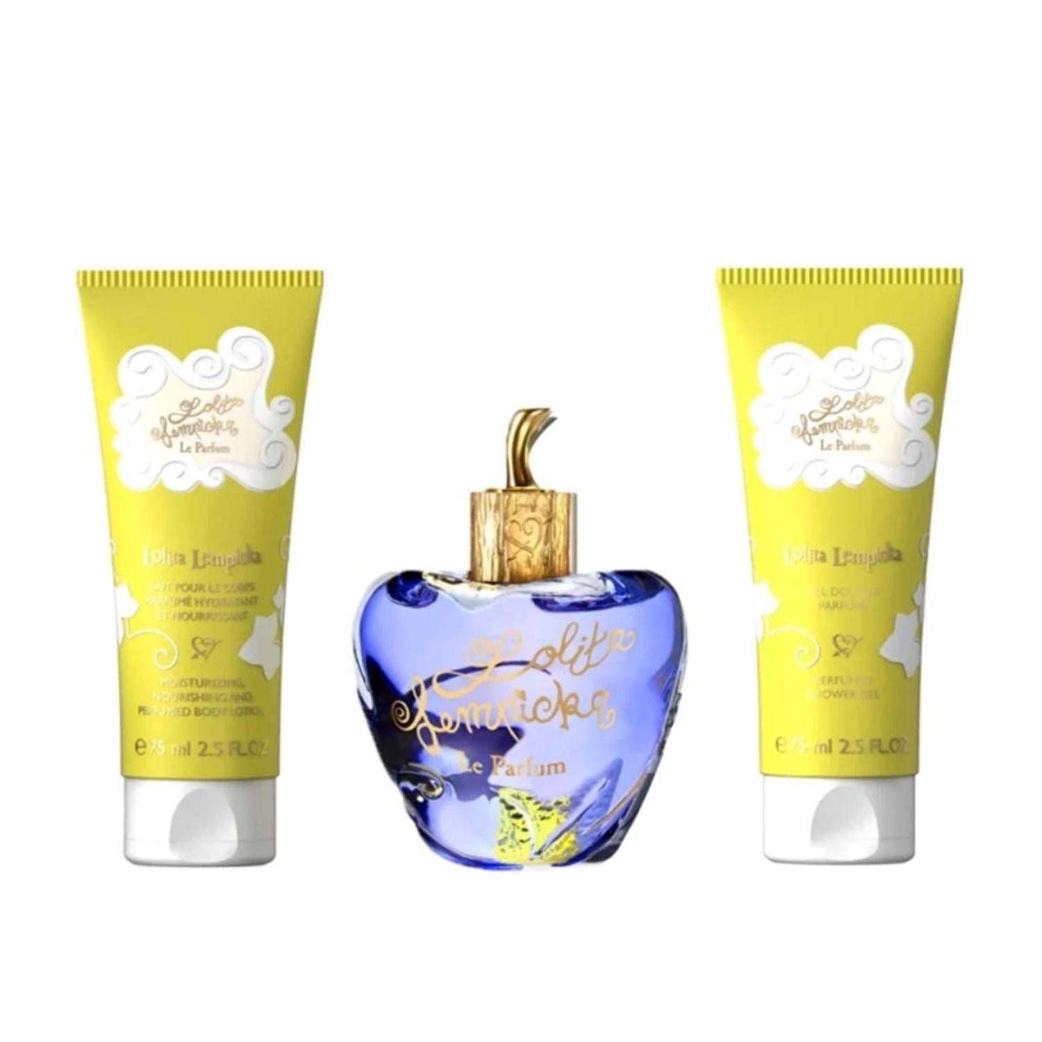 Le Parfum de Lolita Lempicka es más que una simple fragancia; es un viaje sensorial. Presentado en un lujoso set de regalo, incluye un Eau de Parfum de 100 ml, una loción corporal de 75 ml y un gel limpiador de 75 ml. Cada producto está impregnado del cautivador aroma de Le Parfum, lo que te envuelve en su aroma encantador durante todo el día. La loción corporal deja la piel suave, tersa y con un aroma exquisito, mientras que el gel limpiador añade un toque de lujo a tu rutina diaria.