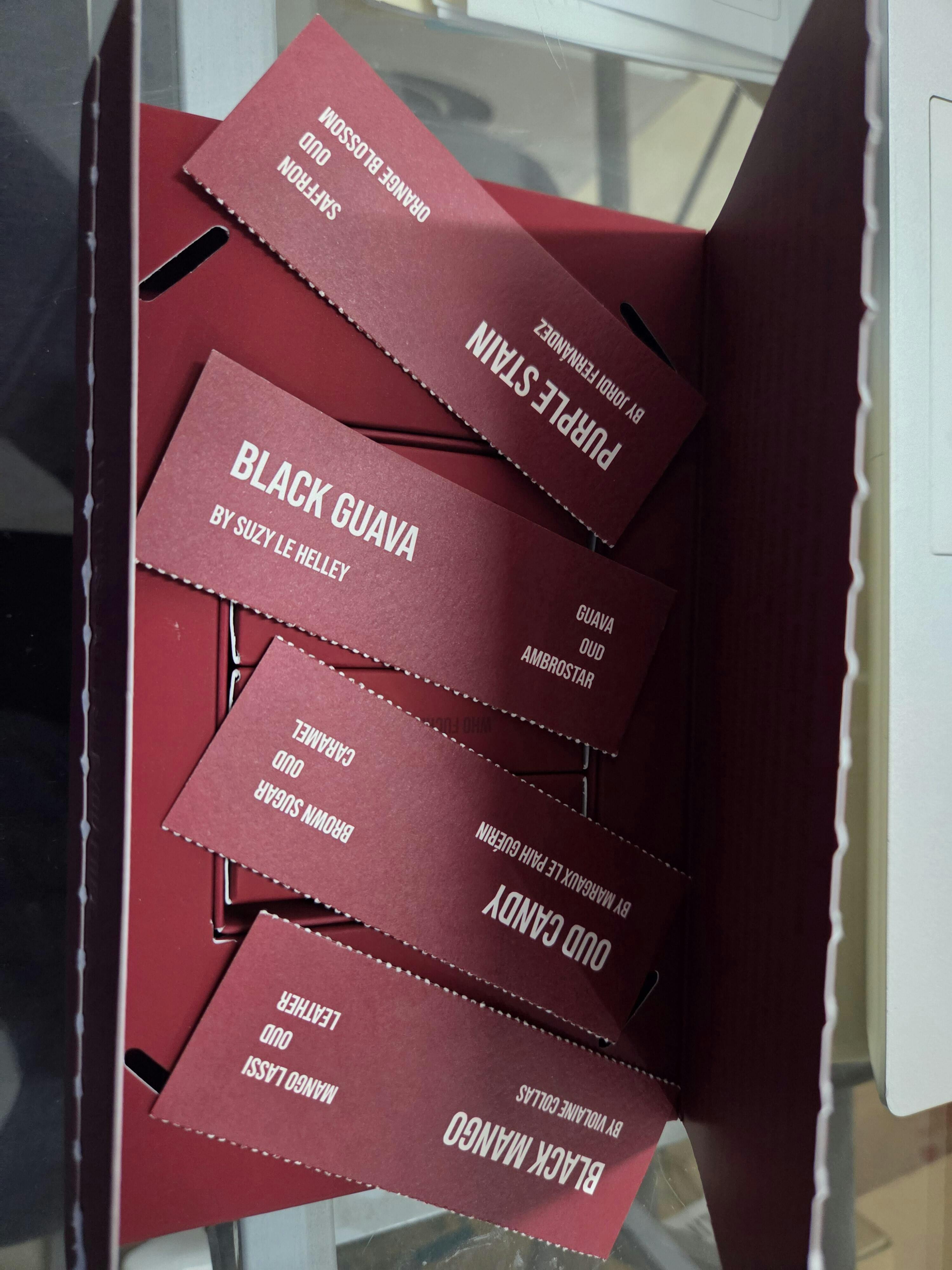 El producto es bello me encantó toda la experiencia desde la compra hasta el día que me llegó y lo abrí. Definitivamente no estaré comprando alguno en tamaño completo porque el oud es una nota demasiado fuerte para mi que me gustan los gourmands. Mi favorito sin duda fue el de vino.