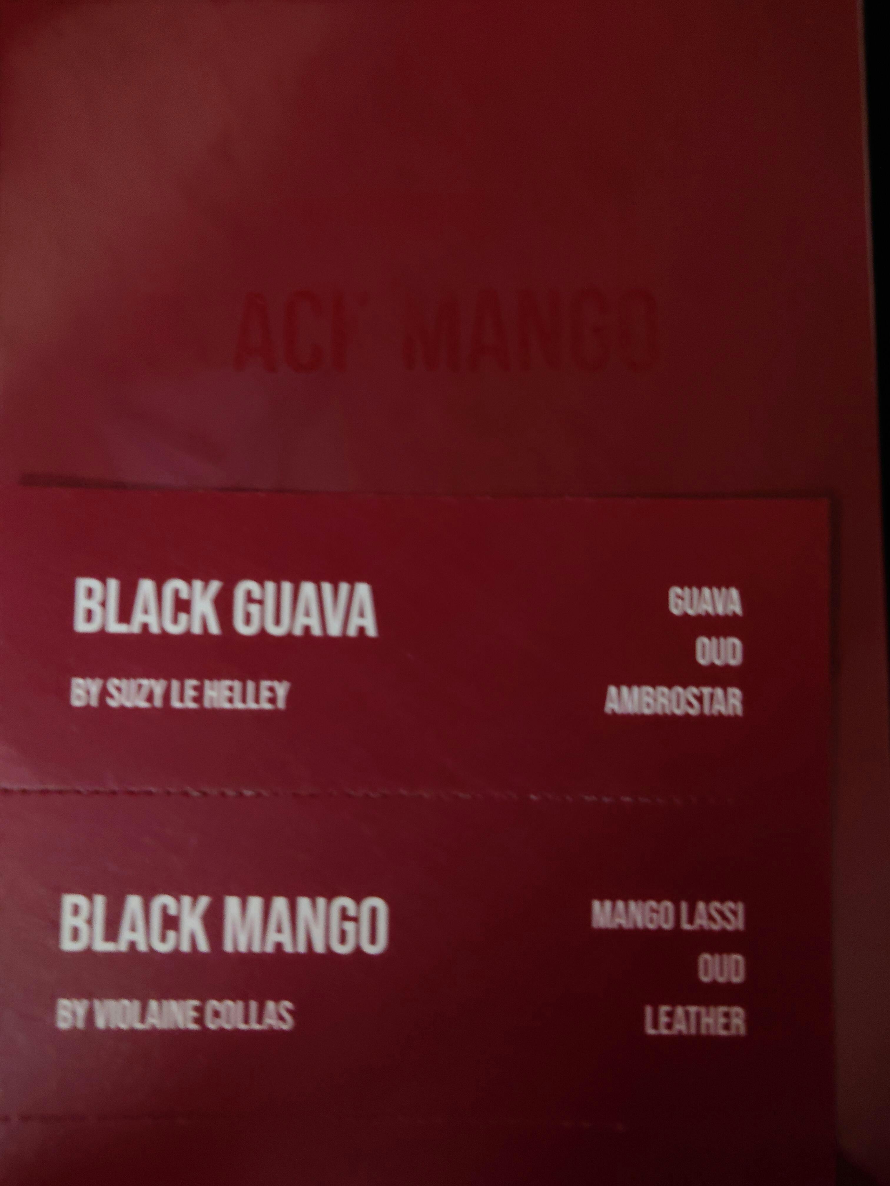 Es un mango en la salida rico en el punto intermedio sale el mango con el oud y en el secado se va el mango y queda el oud, un oud fecal dura mucho , el mejor a mi gusto es el black guayaba
