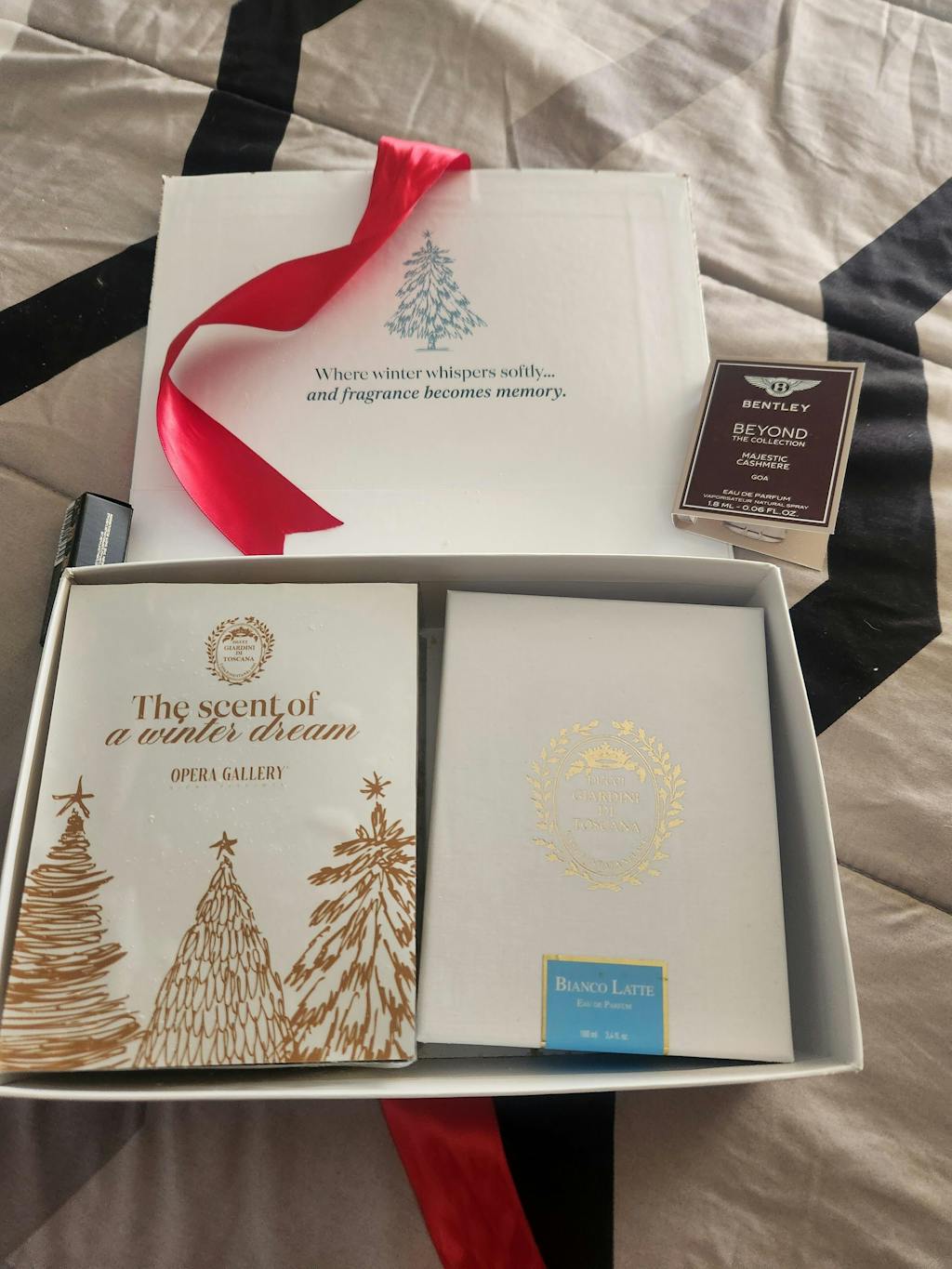 Bianco latte es un perfume maravilloso, totalmente gourmand y con excelente rendimiento, la experiencia de un cofre especial es muy grata, que da una sensación de lujo y exclusividad, excelente compra y maravilloso perfume.