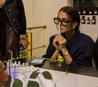 Aura AI interpreta tu historia y la traduce en una composición olfativa personalizada, guiándote en la creación de un perfume que refleje tu identidad.